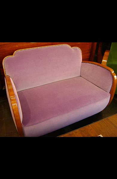 Divano Decò rivestimento velluto di cotone perfettamente restaurato